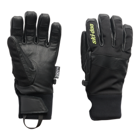Take control of your ride with Ski-Doo Grip Gloves, high-performance insulated gloves perfect for keeping you warm and protected while riding on and off-trail. These breathable gloves are designed with variable-weight insulation to provide warmth where you need it most, along with a waterproof, windproof, and weather-resistant inner lining. Internal adhesive technology, rubberized print on the fingers, and a leather palm offer enhanced grip, dexterity, and durability, while the molded fingers and padded, reinforced palms ensure all-day hand comfort.